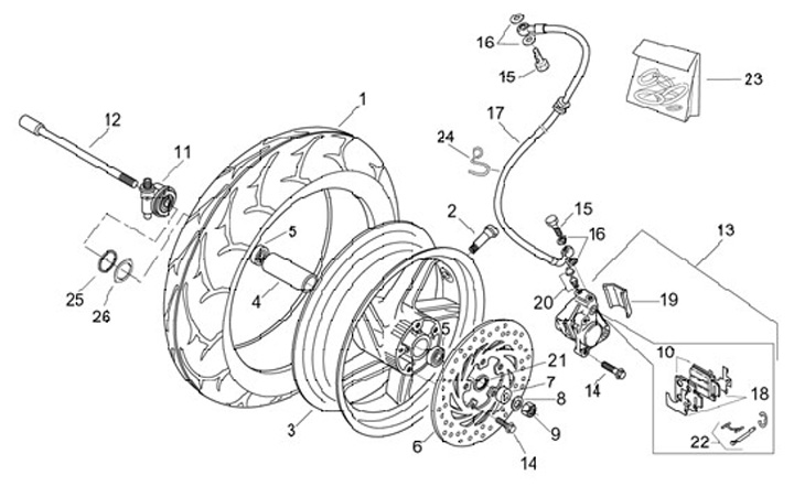 Bromsokspackningssats -APRILIA- Aprilia Leonardo 125 (ZD4MB03), Leonardo ST 125 (ZD4MB06, ZD4TB), SR 50 (ZD4RLA, ZD4TEA, ZD4PX), SR 50 R (ZD4VFD00), SR 50 R Factory (ZD4VFB, ZD4VFO), SR 50 DITech (ZD4RLB, ZD4RLD, ZD4RLE, ZD4TE00, ZD4VFB00)