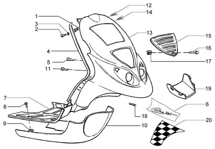 Nedre kåpa -PIAGGIO- NRG (ZAPC18), NRG Extreme (ZAPC21, ZAPC22), NRG MC2 (ZAPC04), NRG MC3 (ZAPC21, ZAPC32)