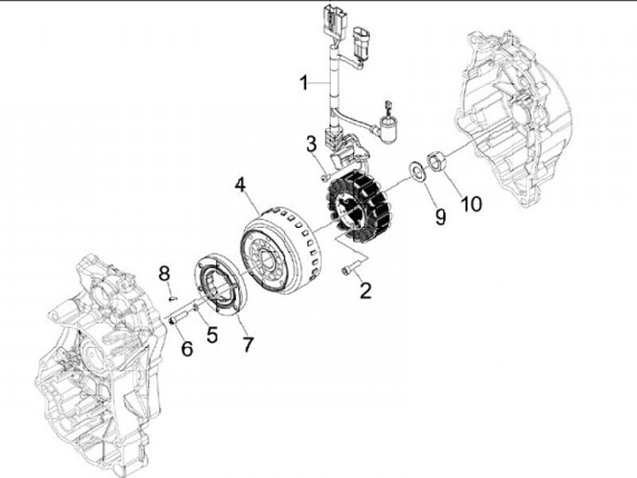 Tändning, basplatta -PIAGGIO- Vespa GT 250 (ZAPM45102), Vespa GTS 250 (ZAPM45100, ZAPM45101), Vespa GTV 250 (ZAPM45102), Aprilia Atlantic 250 (ZD4SPE), Aprilia Scarabeo 250 (ZD4VRB), Aprilia Scarabeo 300 (ZD4VRG00), Aprilia Sport City 125 (ZD4VB002), Apri