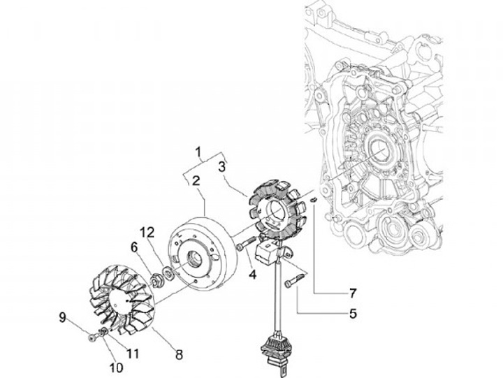Komplett generator -PIAGGIO- Vespa ET4 125 (ZAPM19), GTL 125 (ZAPM311), LX 125 (ZAPM441), Aprilia Mojito 125 (ZD4RY), Piaggio Beverly RST 125 (ZAPM284), Gilera Runner VX 125 (ZAPM461)