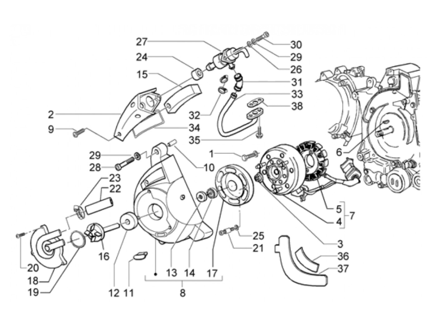 Vattenpumpsskydd -PIAGGIO- Vespa GTL 125-200, GTV 125, Piaggio Beverly 125-250, Hexagon GTX 125-180, Gilera DNA 125-180, Runner VX 125, Runner VXR 200, Aprilia Atlantic 125-250