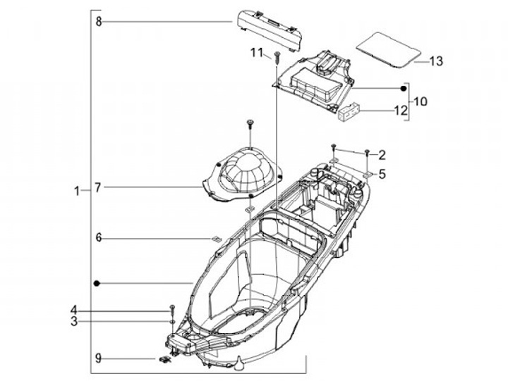 Hjälmfack -GILERA- Runner 125-200 (från 2006) (ZAPM461, ZAPM462, ZAPM463, ZAPM464)