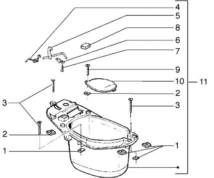 Skydd för stötdämpare i hjälmfacket -PIAGGIO- Gilera Runner50 (ZAPC14), Runner125 FX (ZAPM07), Runner180 FXR(ZAPM08)