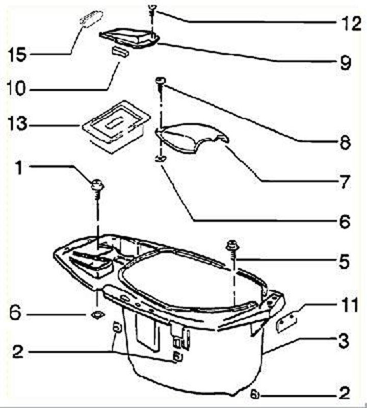 Hjälmfack -PIAGGIO- Piaggio Zip II 100 (LBMM25200), Piaggio Zip II 125 (ZAPM25000), Piaggio Zip II 50 (ZAPC25000, LBMC25C, LBMC25E, LBMC25C00, LBMC25D0), Piaggio Zip II SP 50 (ZAPC25000, ZAPC25600), Piaggio Zip SP 50 (ZAPC11000)
