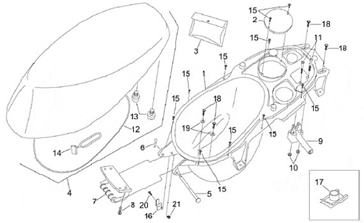 Skydd för luftscoop vario -MALOSSI- Piaggio Leader/Quasar - Vespa ET4, LX, LXV, S, GT, GTS, GTV, GTL 125-300, Royal Alloy GP, TG - svart