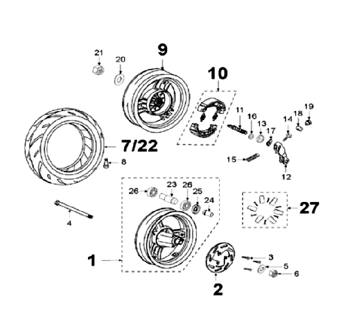 Bromsskor -POLINI Ø=110x25mm- APRILIA Amico 50 ccm 1990-1991 (vh), Amico GL, GLE, LX, Sport Life, LX 50 ccm 1992 (h), Gulliver 50 ccm 1995 (h), Gulliver LC 50 ccm 1996-1997 (h), Rally 50 ccm 1995 (h), Scarabeo 4-takt 50 ccm 2004 (h), Scarabeo 70 ccm 199