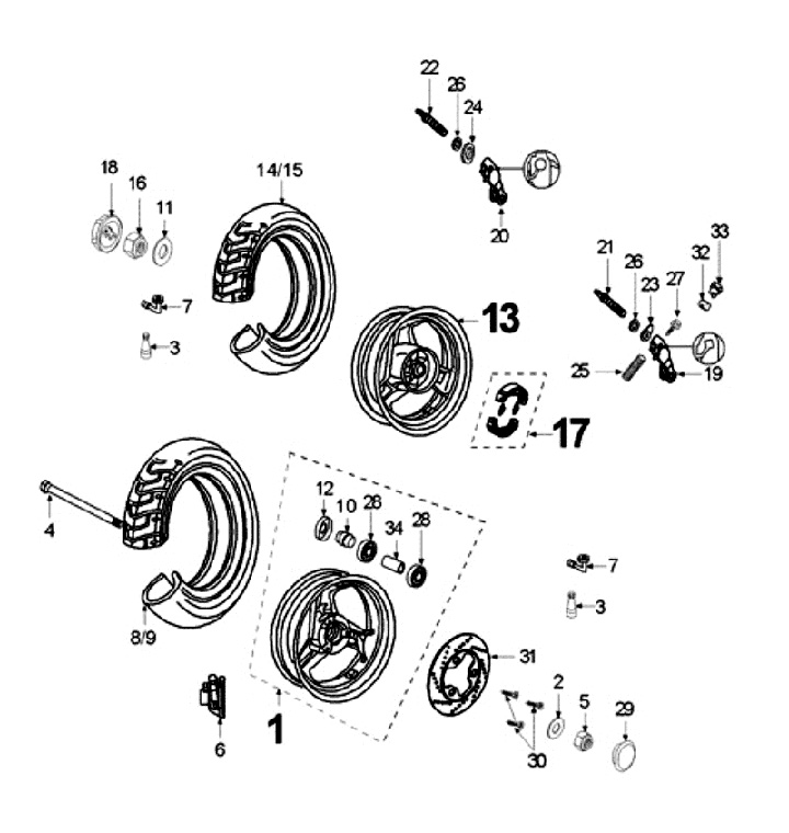 Däck -BGM Sport (tillverkade i Tyskland av Heidenau)- 3.50 - 10 tum TL 59S 180 km/h (förstärkt) - endast för slanglösa fälgar