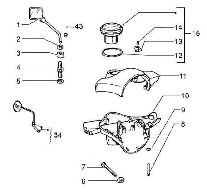 Gummiöverdrag/spegel för styrhuvud -VESPA- Vespa PX Lusso (från 1984), PK XL