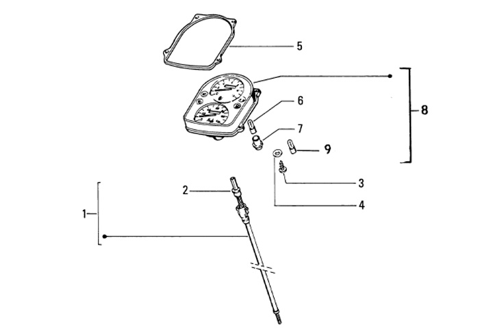 Hastighetsmätarkabel -PIAGGIO- Vespa PX Lusso (från 1984), PX My, PX Disc, PX 2011, T5 125cc, Cosa 125, Cosa 200, PK50 S Lusso, PK80 S Lusso