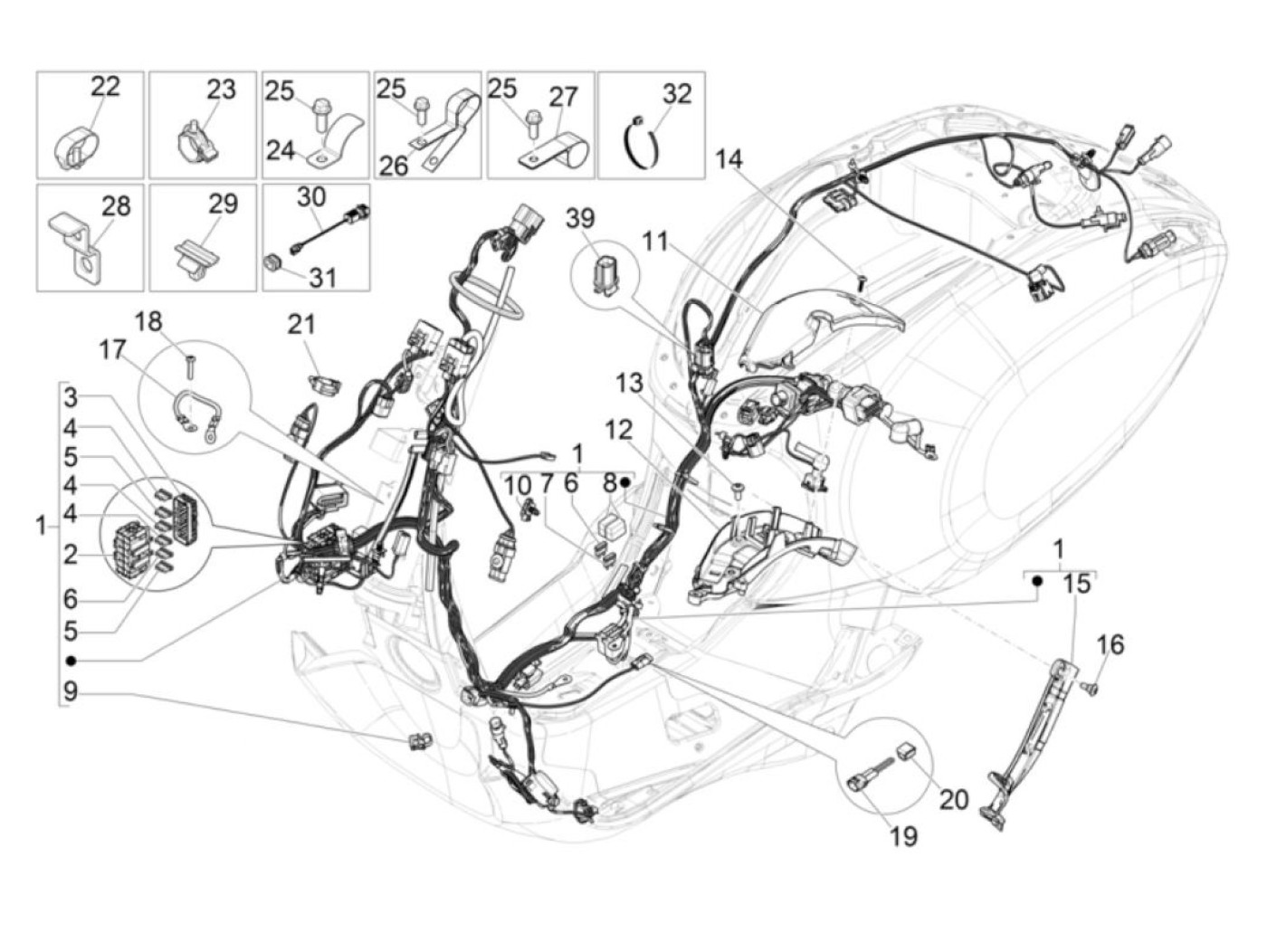 Fästplatta för ledningsnät -PIAGGIO- Vespa Primavera 125 (ZAPM81100, ZAPM81101, ZAPMA1100, RP8M82500, RP8M82821, RP8M82100, RP8M82310, ZAPMA1101, ZAPMD1100), Vespa Primavera 150 (ZAPM81200, ZAPMA1200, ZAPM81201, ZAPMA1201, ZAPMD120), Vespa Primavera 50 (Z