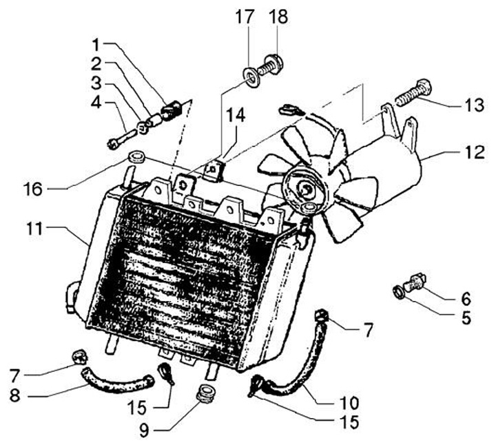 Temperaturgivare i kylare -PIAGGIO- Gilera Runner 125-180 FX-FXR, Runner 125-200 VX-VXR (upp till 2005), Piaggio Hexagon 125-150, Hexagon 125-250 GT-GTX, Hexagon 125-180 LX-LXT