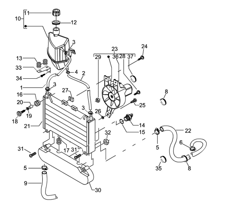 Kylare -PIAGGIO- Gilera Runner 125-180 FX-FXR, Runner 125-200 VX-VXR (upp till 2005), Piaggio Beverly 125-200, X9 125-250, X9 Evo 125-250