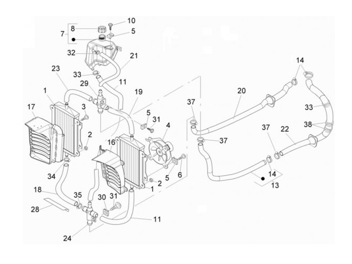 Kylare -PIAGGIO- Vespa GT 250 (ZAPM45102), Vespa GT L 125 (ZAPM31100, ZAPM31101), Vespa GT L 200 (ZAPM31200), Vespa GTS 125 (ZAPM31300), Vespa GTS 250 (ZAPM45100, ZAPM45101), Vespa GTS 300 (ZAPM45200, ZAPM45202, ZAPMA3300), Vespa GTS HPE 300 (ZAPMA3600, Z