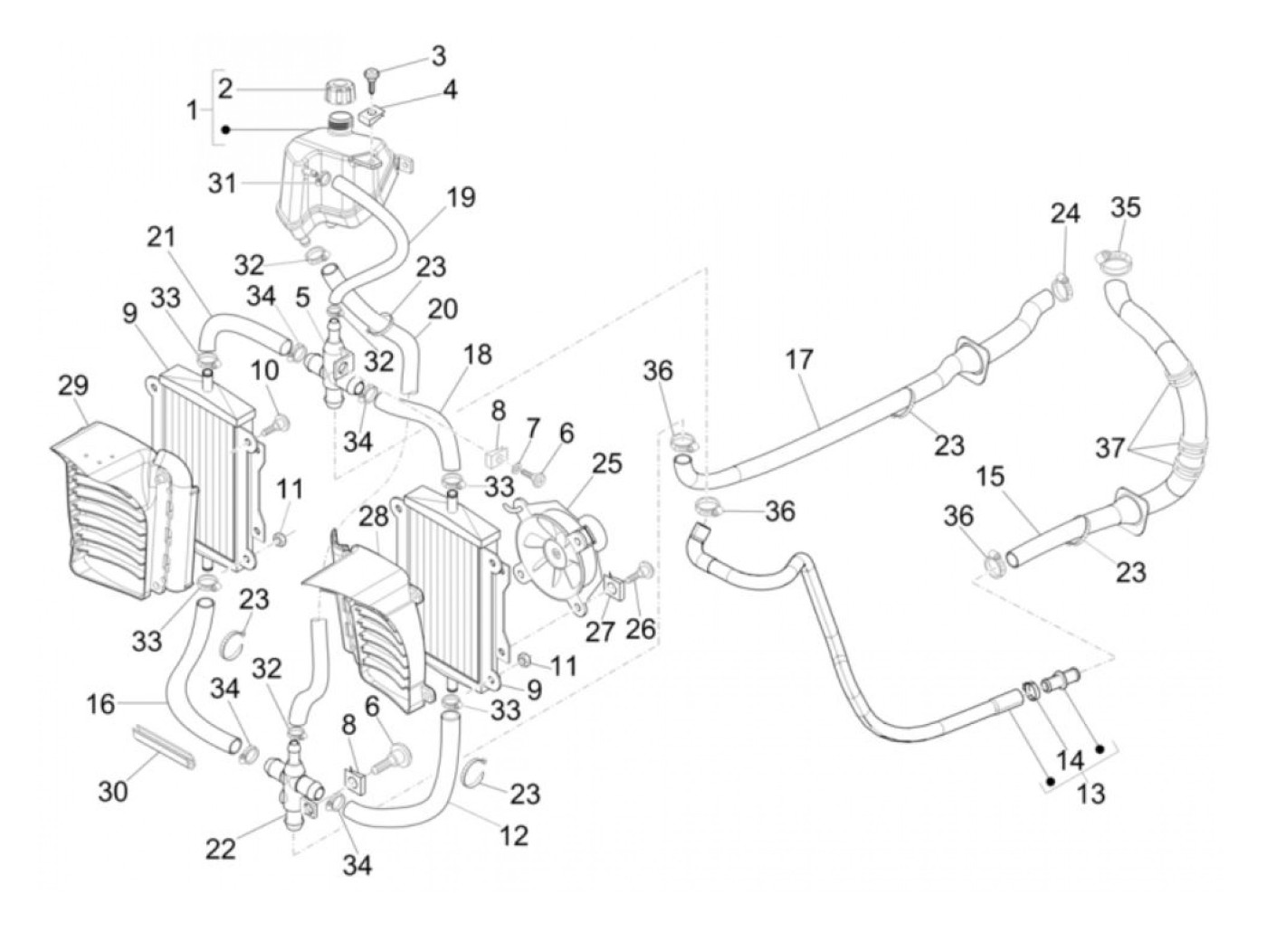 Kylare -PIAGGIO- Vespa GT 250 (ZAPM45102), Vespa GT L 125 (ZAPM31100, ZAPM31101), Vespa GT L 200 (ZAPM31200), Vespa GTS 125 (ZAPM31300), Vespa GTS 250 (ZAPM45100, ZAPM45101), Vespa GTS 300 (ZAPM45200, ZAPM45202, ZAPMA3300), Vespa GTS HPE 300 (ZAPMA3600, Z