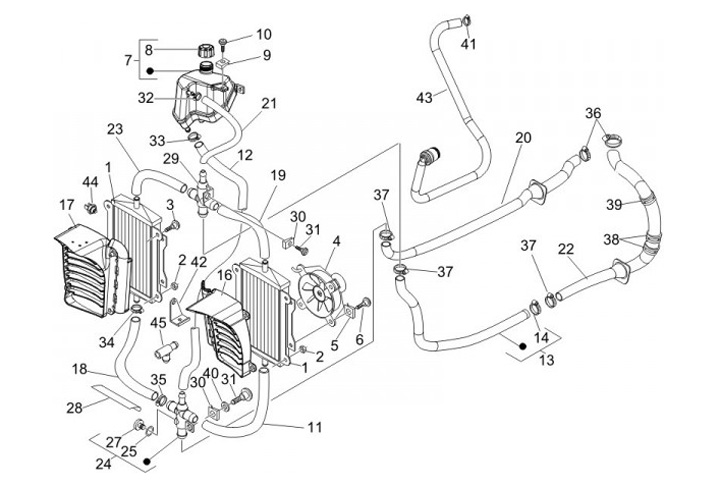 Kylare -PIAGGIO- Vespa GT 250 (ZAPM45102), Vespa GT L 125 (ZAPM31100, ZAPM31101), Vespa GT L 200 (ZAPM31200), Vespa GTS 125 (ZAPM31300), Vespa GTS 250 (ZAPM45100, ZAPM45101), Vespa GTS 300 (ZAPM45200, ZAPM45202, ZAPMA3300), Vespa GTS HPE 300 (ZAPMA3600, Z