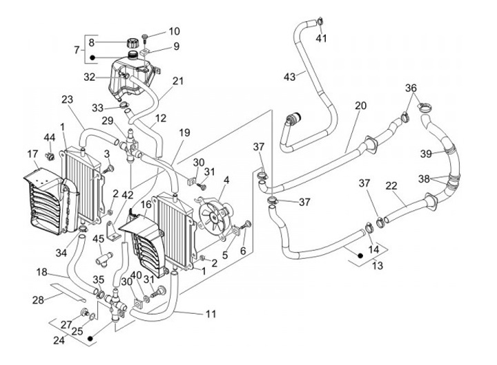 Kylare -PIAGGIO- Vespa GT 250 (ZAPM45102), Vespa GT L 125 (ZAPM31100, ZAPM31101), Vespa GT L 200 (ZAPM31200), Vespa GTS 125 (ZAPM31300), Vespa GTS 250 (ZAPM45100, ZAPM45101), Vespa GTS 300 (ZAPM45200, ZAPM45202, ZAPMA3300), Vespa GTS HPE 300 (ZAPMA3600, Z