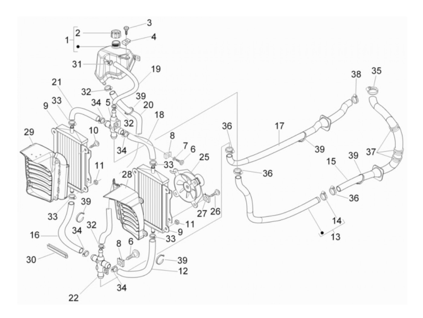 Kylare -PIAGGIO- Vespa GT 250 (ZAPM45102), Vespa GT L 125 (ZAPM31100, ZAPM31101), Vespa GT L 200 (ZAPM31200), Vespa GTS 125 (ZAPM31300), Vespa GTS 250 (ZAPM45100, ZAPM45101), Vespa GTS 300 (ZAPM45200, ZAPM45202, ZAPMA3300), Vespa GTS HPE 300 (ZAPMA3600, Z