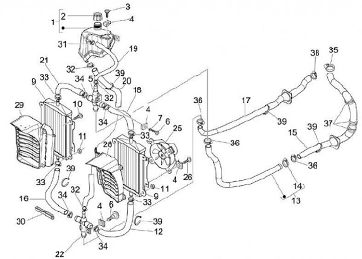 Kylare -PIAGGIO- Vespa GT 250 (ZAPM45102), Vespa GT L 125 (ZAPM31100, ZAPM31101), Vespa GT L 200 (ZAPM31200), Vespa GTS 125 (ZAPM31300), Vespa GTS 250 (ZAPM45100, ZAPM45101), Vespa GTS 300 (ZAPM45200, ZAPM45202, ZAPMA3300), Vespa GTS HPE 300 (ZAPMA3600, Z