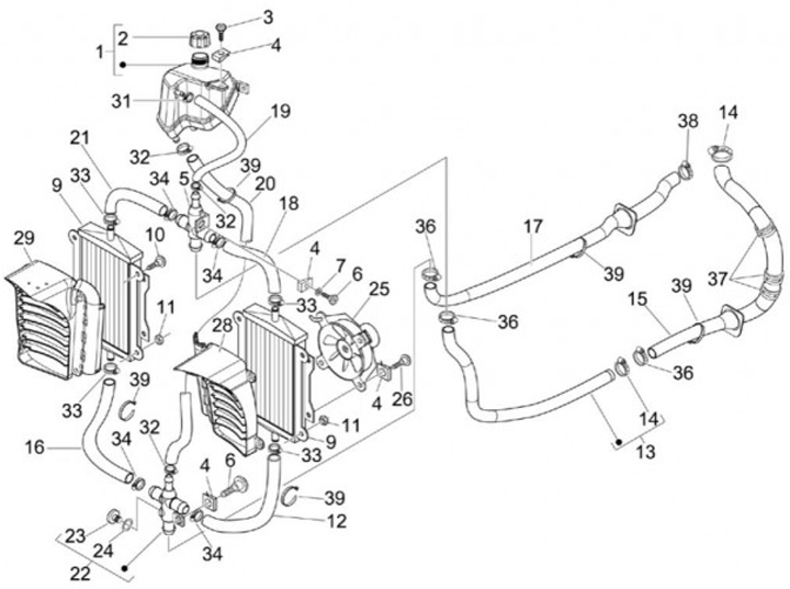 Kylare -PIAGGIO- Vespa GT 250 (ZAPM45102), Vespa GT L 125 (ZAPM31100, ZAPM31101), Vespa GT L 200 (ZAPM31200), Vespa GTS 125 (ZAPM31300), Vespa GTS 250 (ZAPM45100, ZAPM45101), Vespa GTS 300 (ZAPM45200, ZAPM45202, ZAPMA3300), Vespa GTS HPE 300 (ZAPMA3600, Z