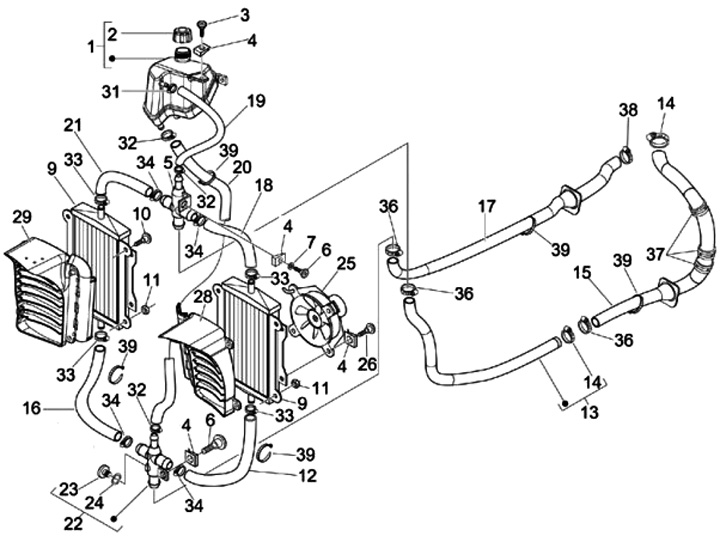 Kylare -PIAGGIO- Vespa GT 250 (ZAPM45102), Vespa GT L 125 (ZAPM31100, ZAPM31101), Vespa GT L 200 (ZAPM31200), Vespa GTS 125 (ZAPM31300), Vespa GTS 250 (ZAPM45100, ZAPM45101), Vespa GTS 300 (ZAPM45200, ZAPM45202, ZAPMA3300), Vespa GTS HPE 300 (ZAPMA3600, Z
