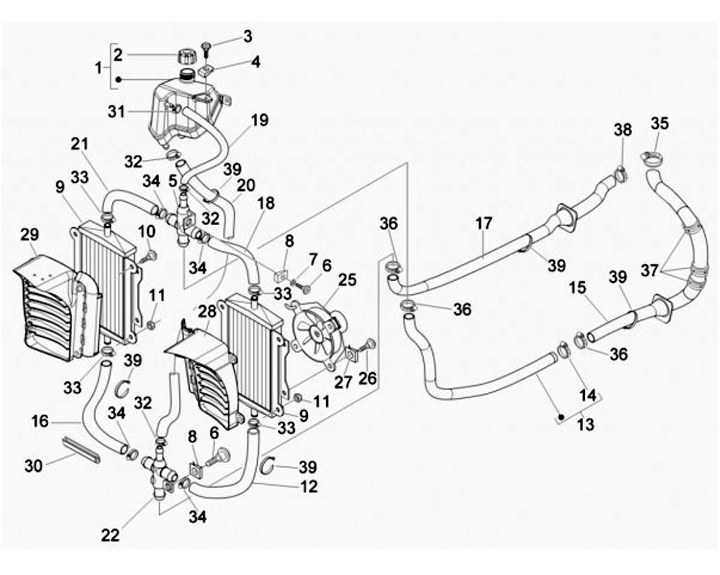 Kylare -PIAGGIO- Vespa GT 250 (ZAPM45102), Vespa GT L 125 (ZAPM31100, ZAPM31101), Vespa GT L 200 (ZAPM31200), Vespa GTS 125 (ZAPM31300), Vespa GTS 250 (ZAPM45100, ZAPM45101), Vespa GTS 300 (ZAPM45200, ZAPM45202, ZAPMA3300), Vespa GTS HPE 300 (ZAPMA3600, Z