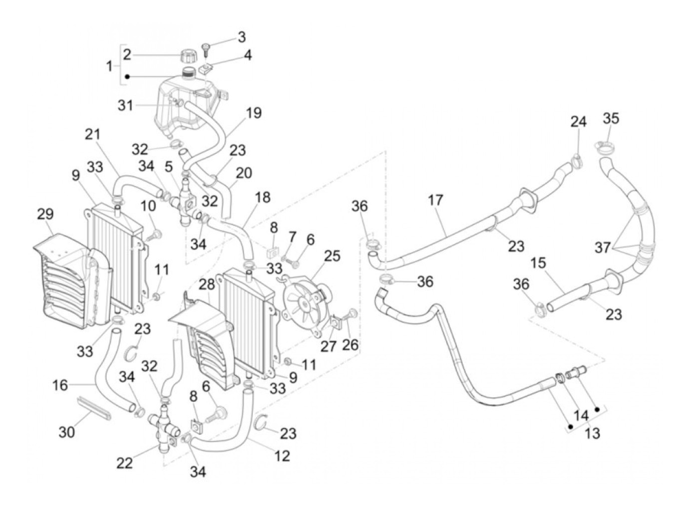 Kylare -PIAGGIO- Vespa GT 250 (ZAPM45102), Vespa GT L 125 (ZAPM31100, ZAPM31101), Vespa GT L 200 (ZAPM31200), Vespa GTS 125 (ZAPM31300), Vespa GTS 250 (ZAPM45100, ZAPM45101), Vespa GTS 300 (ZAPM45200, ZAPM45202, ZAPMA3300), Vespa GTS HPE 300 (ZAPMA3600, Z