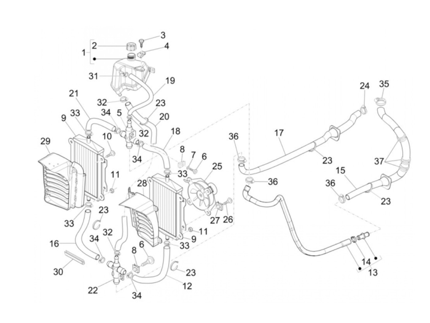 Kylare -PIAGGIO- Vespa GT 250 (ZAPM45102), Vespa GT L 125 (ZAPM31100, ZAPM31101), Vespa GT L 200 (ZAPM31200), Vespa GTS 125 (ZAPM31300), Vespa GTS 250 (ZAPM45100, ZAPM45101), Vespa GTS 300 (ZAPM45200, ZAPM45202, ZAPMA3300), Vespa GTS HPE 300 (ZAPMA3600, Z