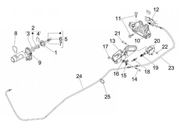 Kabeldrag (lång) för lås på sittbänk -PIAGGIO- Vespa GT 250 (ZAPM45102), Vespa GT L 125 (ZAPM31100, ZAPM31101), Vespa GT L 200 (ZAPM31200), Vespa GTS 125 (ZAPM31300, ZAPMA3100, ZAPMA3200, ZAPMA3700), Vespa GTS 150 (ZAPMA3200, ZAPMA3100), Vespa GTS 250 (ZA