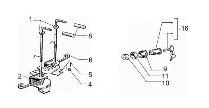 Låssats för sidokåpa -OEM KVALITET- Vespa PX (modeller med internt lås), T5 125cc, LML Star/Stella 2-takts