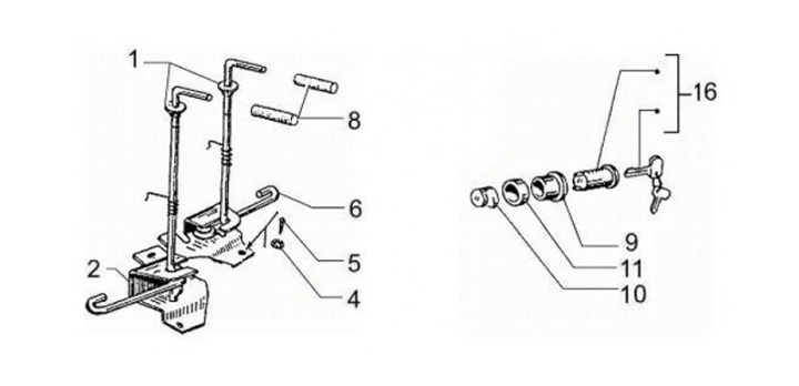 Låssats för sidokåpa -OEM KVALITET- Vespa PX (modeller med internt lås), T5 125cc, LML Star/Stella 2-takts