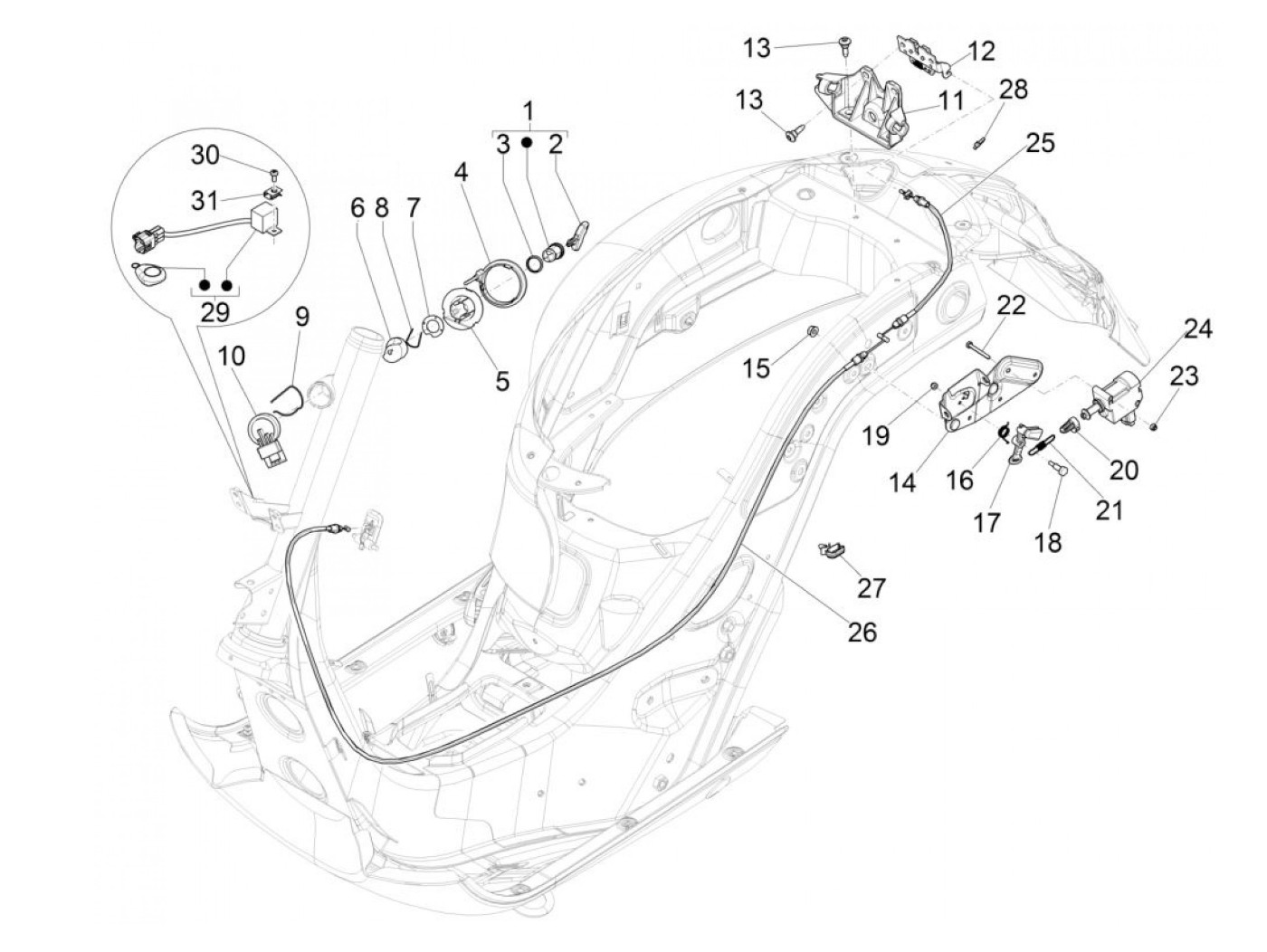 Tändningslås -PIAGGIO- Vespa GTS 125 (ZAPMA3100, ZAPMA3200, ZAPMA3700), Vespa GTS 150 (ZAPMA3100, ZAPMA3200), Vespa GTS 300 (ZAPMA3300), Vespa GTS HPE 300 (ZAPMA3600, ZAPMD310), Vespa GTS Super 125 (ZAPMA3100, ZAPMA3200, ZAPMA3700), Vespa GTS Super 300 (Z