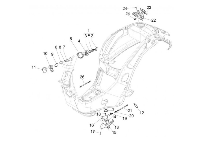 Låsbult -PIAGGIO Ø26mm- Gilera ICE, Runner, Piaggio Fly, Hexagon GT-GTX, Hexagon LX, LXT, Liberty, NRG Power, X7, X8, X Evo, Zip (från 2000), Vespa ET2, ET4, GT, LX, LXV, S
