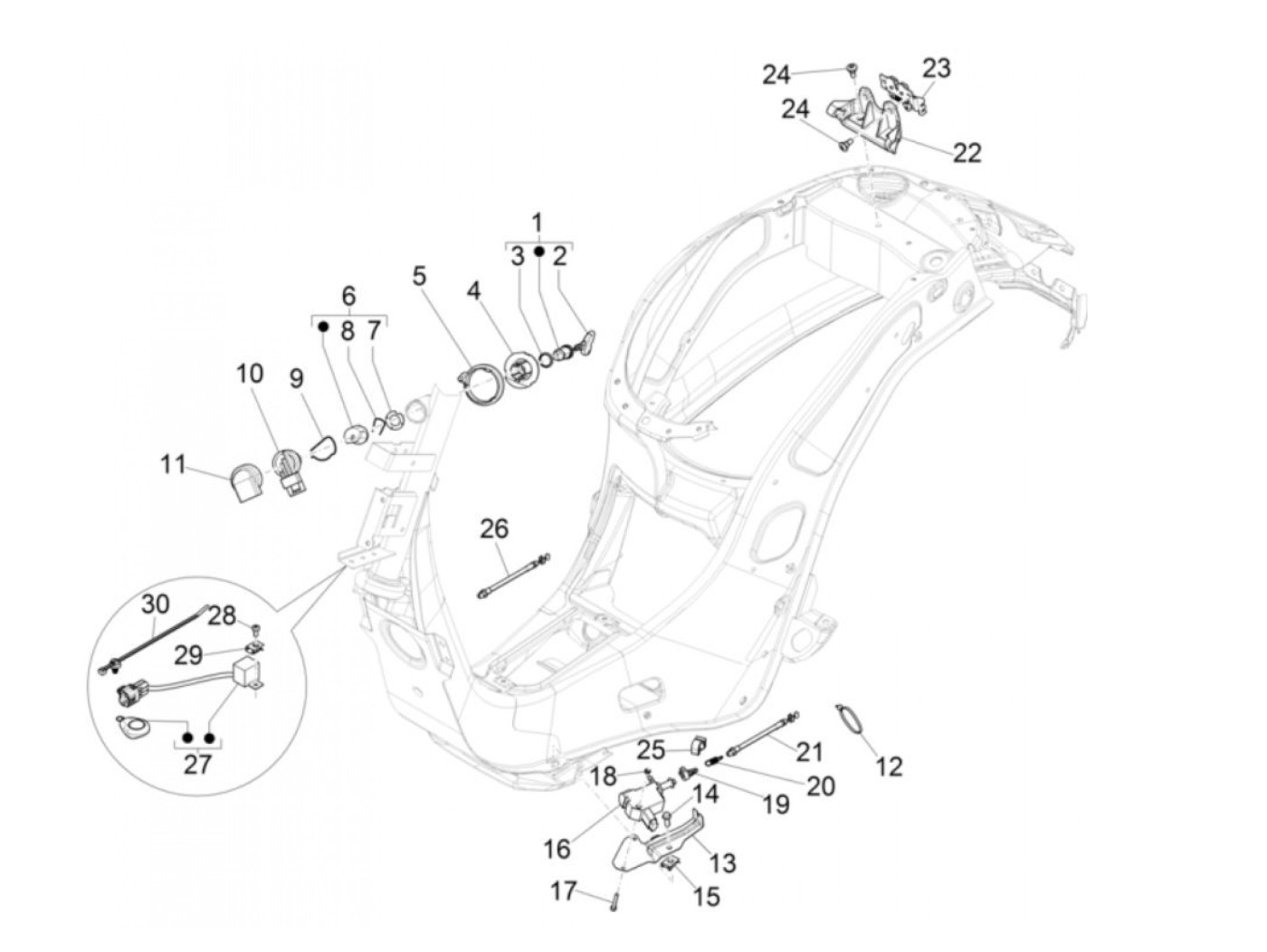 On-Off-Lock-uttag -PIAGGIO- Vespa GTS 125 (ZAPMA3100, ZAPMA3200, ZAPMA3700), Vespa GTS 150 (ZAPMA3200, ZAPMA3100), Vespa GTS 300 (ZAPMA3300), Vespa GTS HPE 300 (ZAPMA3600, ZAPMD310), Vespa GTS Super 125 (ZAPMA3100, ZAPMA3200, ZAPMA3700), Vespa GTS Super