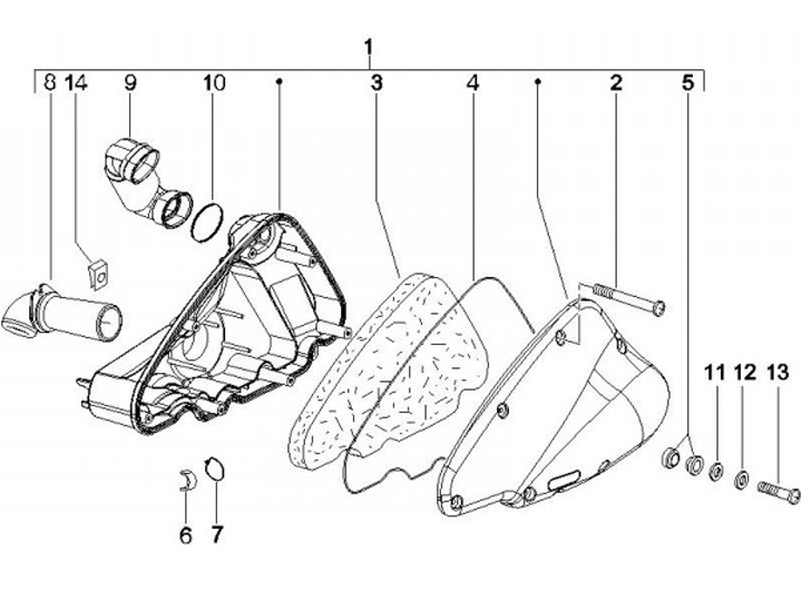 Luftfilterbox -PIAGGIO- Gilera Runner 50 ccm upp till 2005, Gilera Runner 50 ccm PureJet upp till 2005, Gilera Stalker 50 ccm, Piaggio NRG MC2 50 ccm från 1998, Piaggio NRG Extreme 50 ccm, Piaggio NRG MC3 50 ccm PureJet