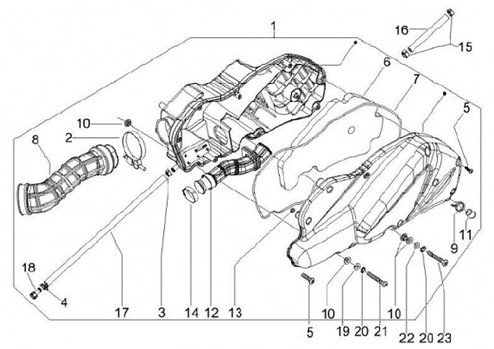Luftfilterbox cpl. -PIAGGIO- Beverly 400-500, MP3 400-500, X8 400, XEvo 400, Gilera Fuoco 500, Aprilia Atlantc 400-500, Scarabeo Light 400-500