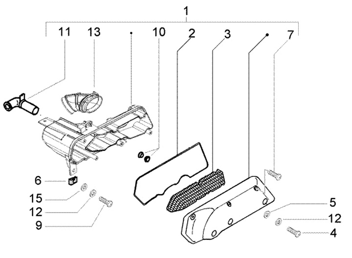 Luftfilterbox cpl. -PIAGGIO- Vespa LX 50,LXV 50, Primavera 50, S 50, Sprint 50, Piaggio Fly 50, Liberty 50, NRG 50, TPH 50, Zip II 50, Aprilia Scarabeo 50,Sport City One 50, Derbi Sonar 50, Gilera Stalker 50, Storm 50