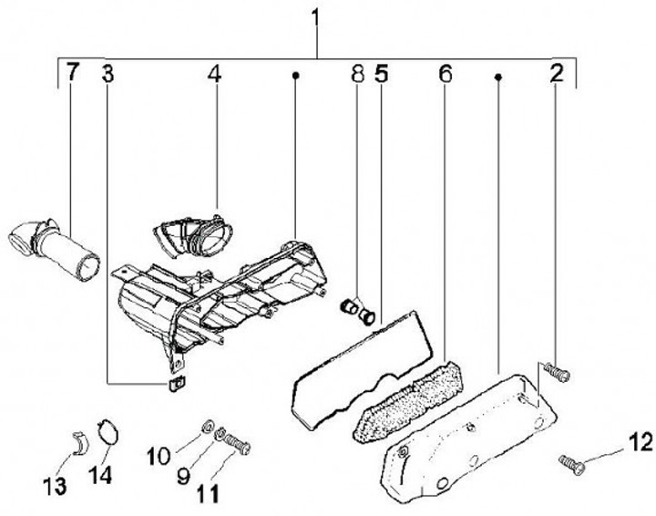 Luftfilterbox -PIAGGIO- Vespa ET2 50 (ZAPC16000, ZAPC38100), Vespa LX 50 (ZAPC38101, ZAPC38400), Vespa Primavera 50 (ZAPC53200), Vespa S 50 (ZAPC38402), Gilera DNA 50 (ZAPC27000), Gilera Ice 50 (ZAPC30000), Gilera Runner 50 (ZAPC36200, ZAPC36400, ZAPC4