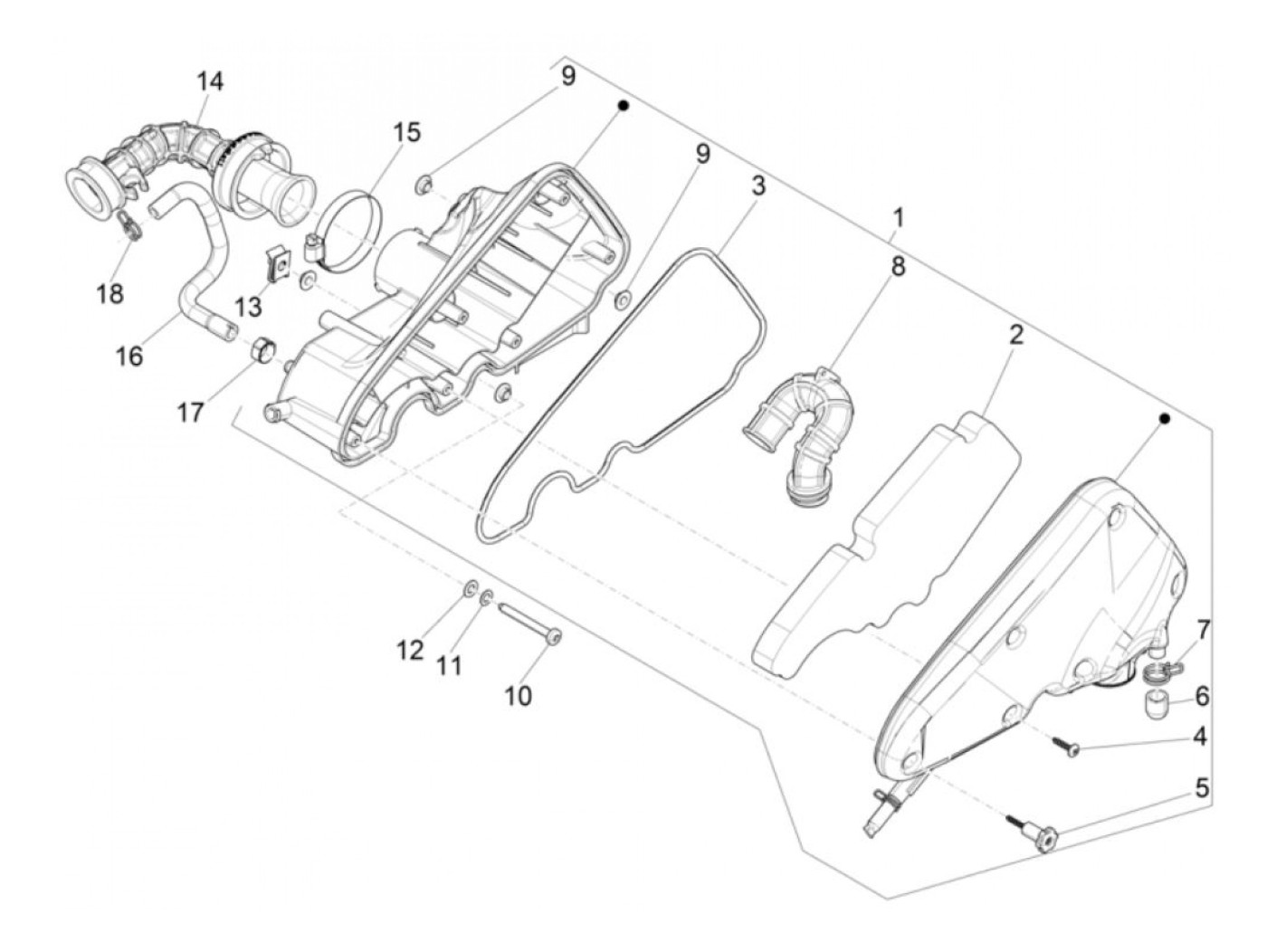 Luftfilterbox cpl. -PIAGGIO- Vespa Primavera 50 2018-2023, Sprint 50 2018-2023