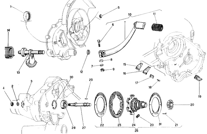 Nit till primär -PIAGGIO- Vespa PX80, PX125, PX150, PX200, Cosa, T5 125cc, Rally180 (VSD1T), Rally200 (VSE1T), VNC (från 11001), GT125 (VNL2T), GTR125 (VNL2T), TS125 (VNL3T), GL150 (VLA1T), VBC, Sprint, GS160 / GS4 (VSB1T), SS180 (VSC1T)