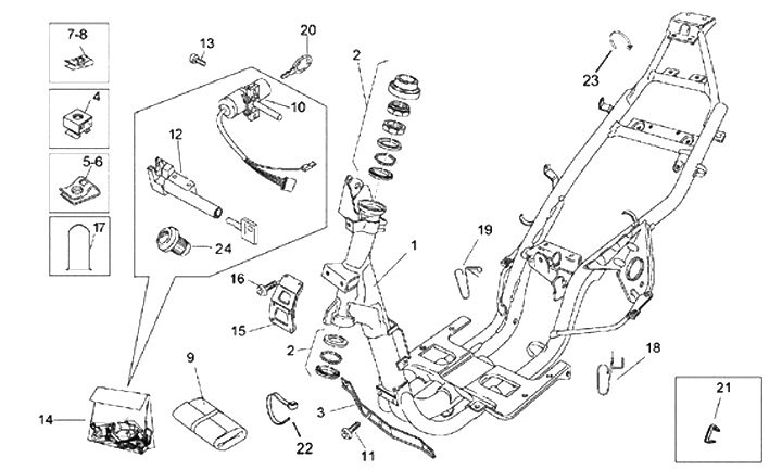 Låssats -OEM KVALITET- Aprilia SR AC/LC (-1999), Aprilia Rally AC/LC
