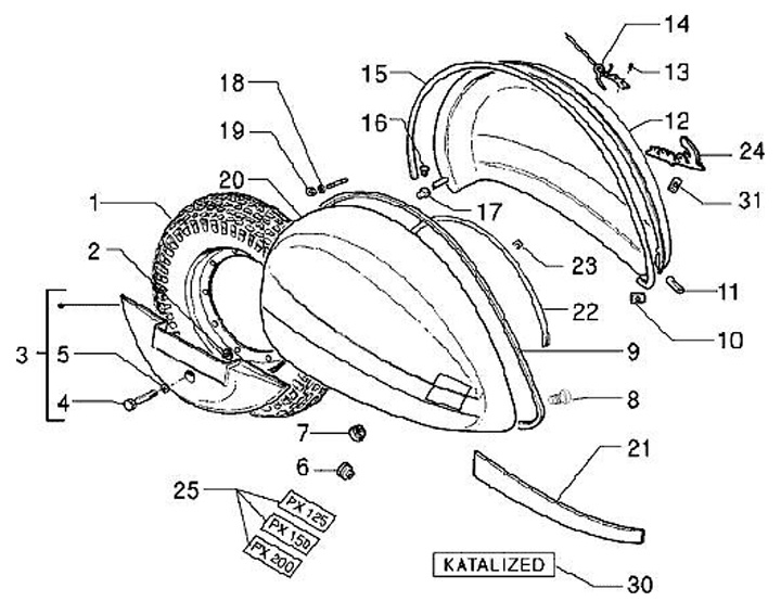 Reservhjulskåpa -PIAGGIO- Vespa PX80, PX125, PX150, PX200