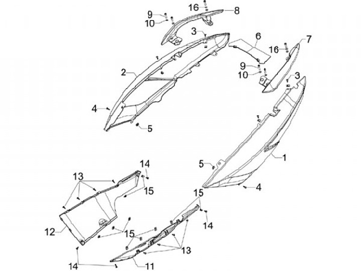 Skydd -PIAGGIO- Bakre kåpans centrum - Gilera GP 800 - Nero Grafite (079/A)
