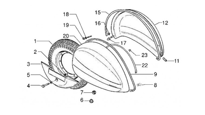 Gummi sidoskydd krok bak -PIAGGIO- Vespa Largeframe (från 1958)