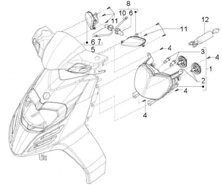 Strålkastare -PIAGGIO- Ny TPH 50-125 (från 2010) (LBMC501, LBMM701, ZAPM501)