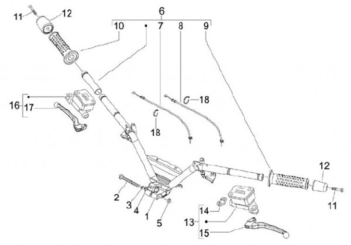 Bromshandtag , svart (Heng Tong) -PIAGGIO- L=175mm - Aprilia SR 50 (ZD4TEA, ZD4VFD), Di-Tech (ZD4VFB), SR 125 Max 125-300 (ZAPM35), Gilera DNA 50 (ZAPC27), Fuoco 500, Nexus 125-300, Stalker 50, Beverly 125-300, Carnaby 125-300, MP3 125-500, X7 125-300, X