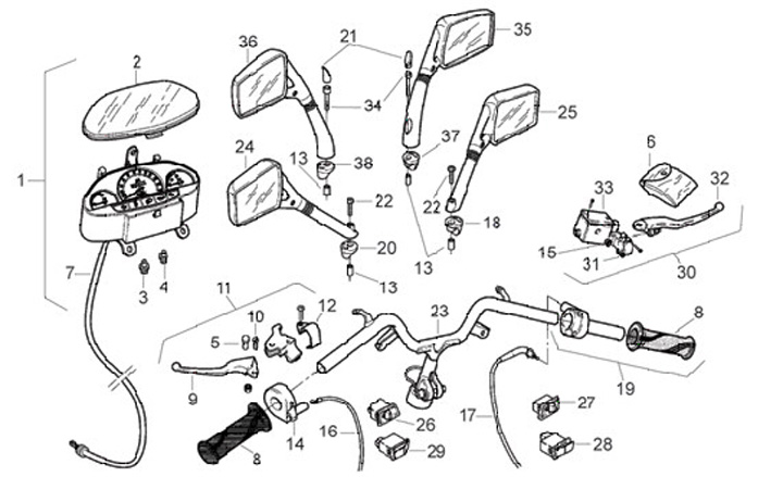 Gasvajer från styret -OEM KVALITET- Aprilia SR 50 (upp till 1997), Amico LX, Amico Sport