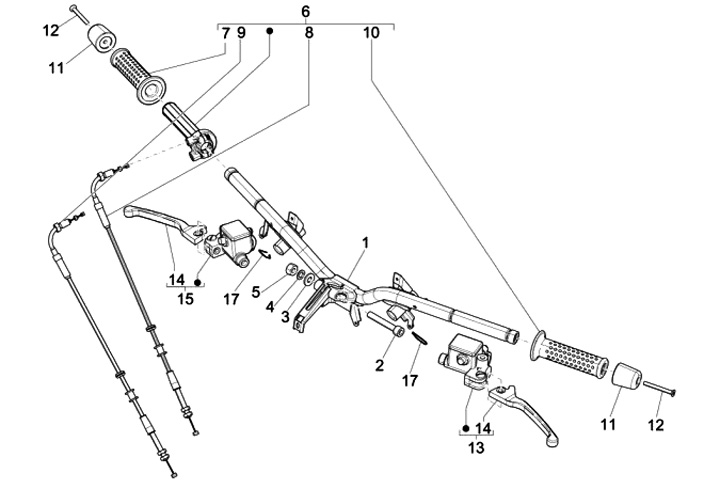Gashandtag och gasvajrar -PIAGGIO- Vespa GTS 250 (ZAPM45100), Vespa GTS 300 (ZAPM45200, ZAPM45202), Vespa GTS Super 125 (ZAPM45300, ZAPM45301), Vespa GTS Super 300 (ZAPM45200, ZAPM45202)