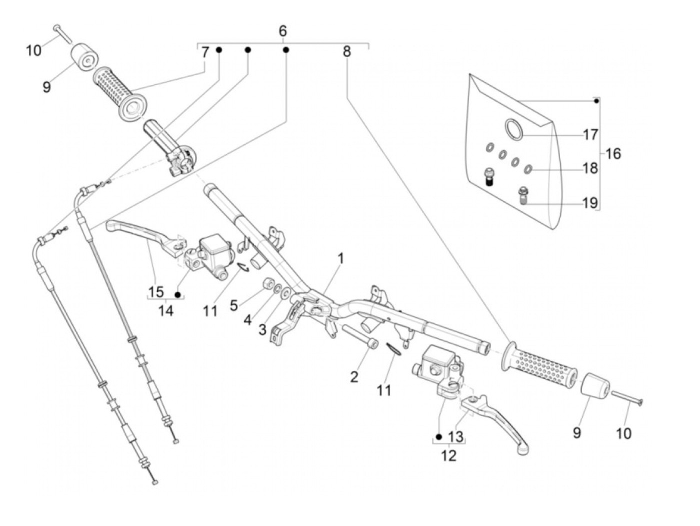 Styr -PIAGGIO- Vespa GTS 125 (ZAPMA3700), Vespa GTS HPE 300 (ZAPMA3600, ZAPMD310), Vespa GTS Super 125 (ZAPMA3700), Vespa GTS Super HPE 300 (ZAPMA360, ZAPMD3100)