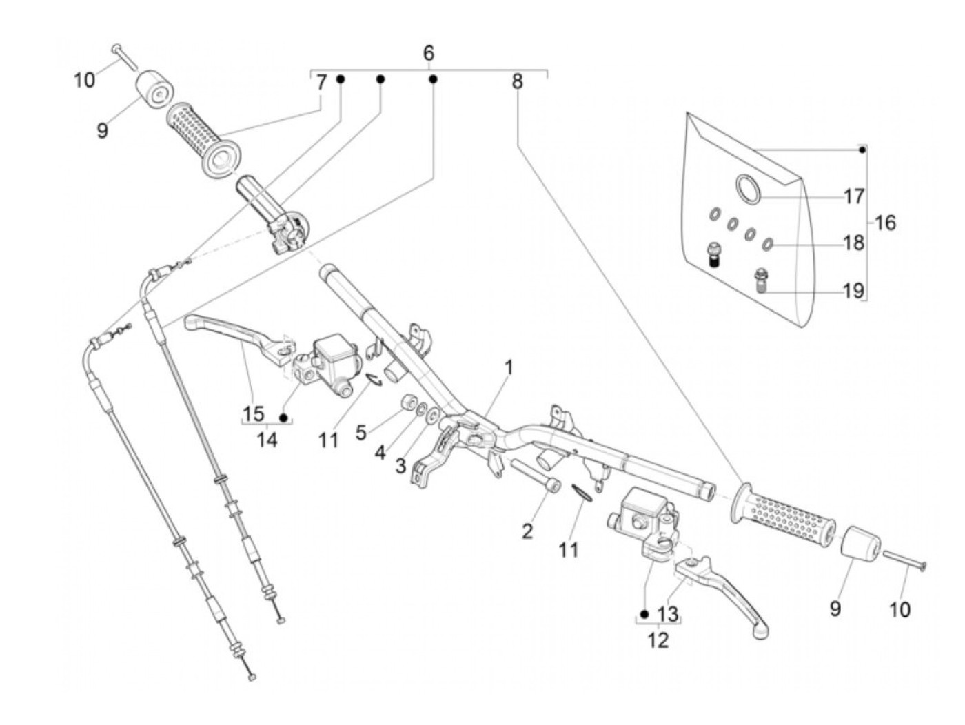 Styr -PIAGGIO- Vespa GTS 125 (ZAPMA3700), Vespa GTS HPE 300 (ZAPMA3600, ZAPMD310), Vespa GTS Super 125 (ZAPMA3700), Vespa GTS Super HPE 300 (ZAPMA360, ZAPMD3100)