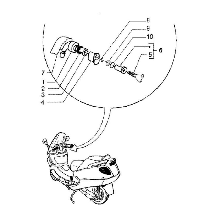 Tändningslås -PIAGGIO- Gilera ICE, Runner50-200, Piaggio Fly, Hexagon GT-GTX, Hexagon LX-LXT, Liberty, NRG Power, Skipper, X7, X9, Zip (från år 2000), Vespa ET2, ET4, LX, LXV, S